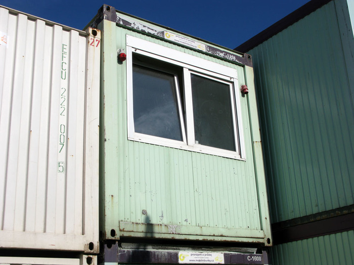 Tento obytný kancelářský kontejner je v dobrém stavu, nemá závažné závady.