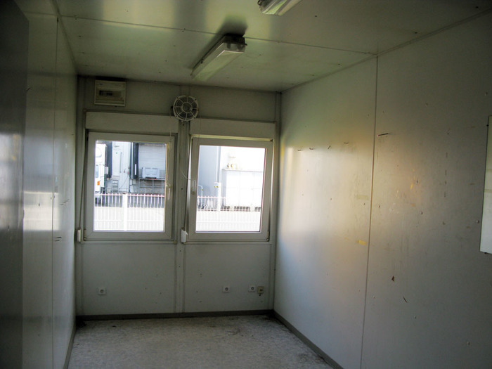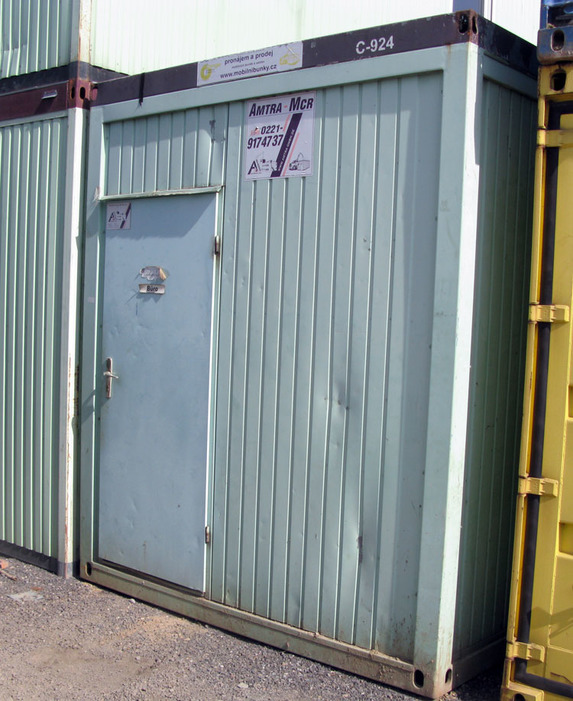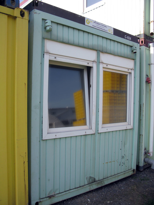 Konstrukce je tvořena samonosným ocelovým rámem, vnější plechy jsou pozinkované a lakované zelenou barvou, interiér lamino desky ve světlé barvě, je tepelně izolovaný, podlaha lino, plastová okna, plechové vstupní dveře, elektroinstalace, jističe, osvětlení, vypínače, zásuvky. Kontejner má technické závady, patrné z fotodokumentace. Tento obytný kontejner má za vstupními dveřmi malé zádveří, pro úsporu vytápění v zimním období. Po opravení v rozsahu "domácího kutilství" provozuschopný.