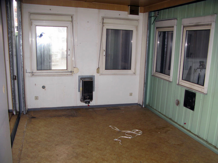 Konstrukce je tvořena samonosným ocelovým rámem, vnější plechy jsou pozinkované a lakované světle zelenou barvou, interiér lamino desky ve světlé barvě, je tepelně izolovaný, podlaha lino, plastová okna, plastové vstupní dveře, elektroinstalace, jističe, osvětlení, vypínače, zásuvky. Kontejner má technické závady, patrné z fotodokumentace. Po opravení provozuschopný.