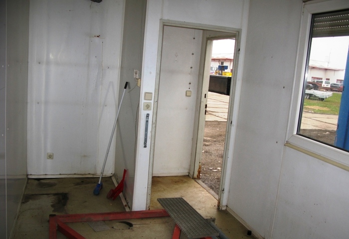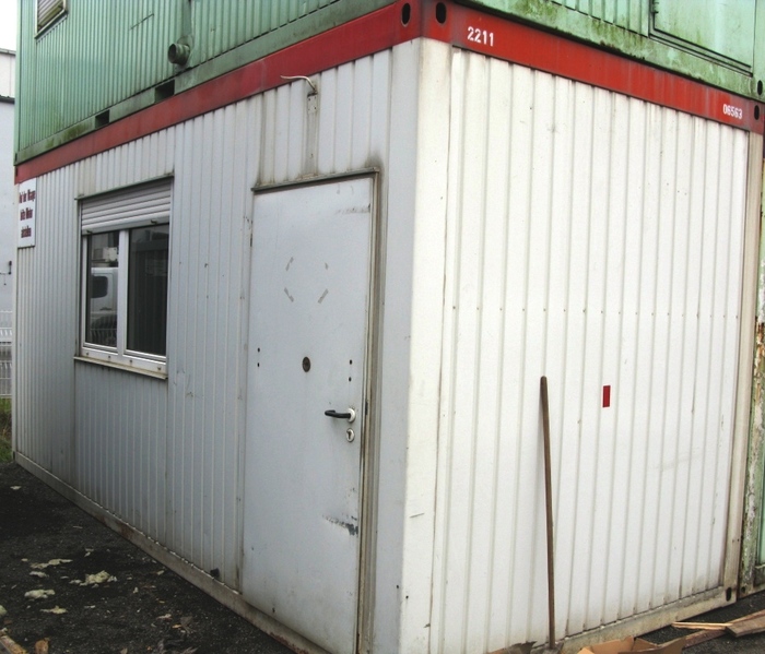 Konstrukce je tvořena samonosným ocelovým rámem, vnější plechy jsou pozinkované a lakované bílou barvou, interiér lamino desky ve světlé barvě, je tepelně izolovaný, podlaha lino, plastová okna, plechové vstupní dveře, elektroinstalace, jističe, osvětlení, vypínače, zásuvky. Kontejner má technické závady, patrné z fotodokumentace. Je nutná oprava podlahy a také závěsu okna. Po opravení v rozsahu "domácího kutilství" provozuschopný.