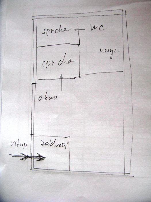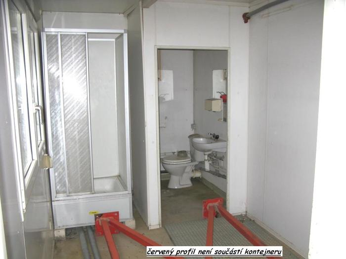 Součástí kontejneru je WC s umyvadlem a dále sprchový kout (dokonce dva, které lze také snadno odstranit). Na dveřích je ocelová petlice.